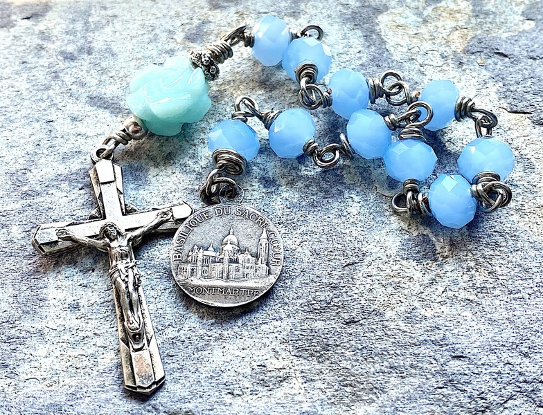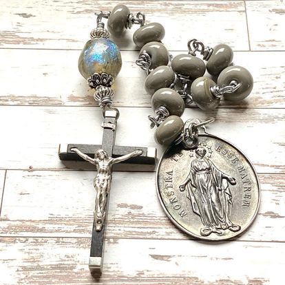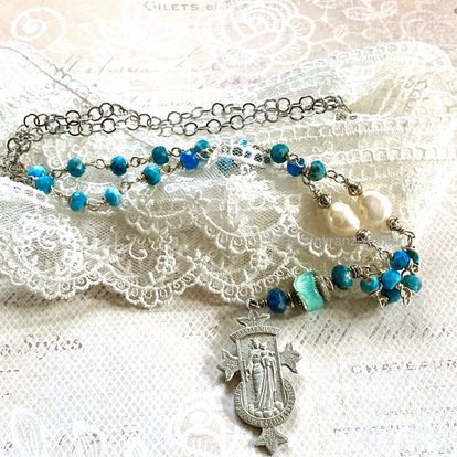 Mein Spezialgebiet ist das Verarbeiten von antiken Medaillen und Kreuzen zu neuen Rosenkränzen, um ihnen ein neues Gebets-Leben zu schenken. Diese alten teilweise auch schon ein wenig abgenutzten Teile wurden jahrzehntelang zum Gebet benutzt und es ist ein ganz besonderer Segen, sie jetzt wieder zum Leben zu erwecken und gleichzeitig ein kleines Gebet für die Vorbesitzer zu sprechen und diese vielleicht auch um Fürbitte für die eigenen Gebetsanliegen zu bitten.